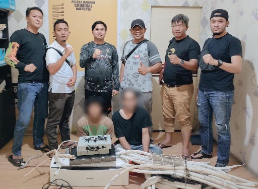 Pelaku yang diketahui berjumlah dua orang diamankan oleh unit Reskrim polsek bangko setelah mendapatkan laporan dari korban bahwa barang barang di ruko berupa AC, pipa kuningan, 2 buah travo dan mesin cctv milik korban telah di curi orang.