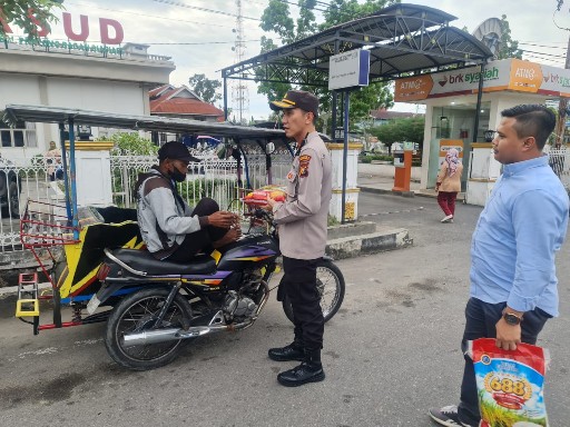 Kapolres Rohil Beri Bantuan Ratusan Paket Sembako, Kepada Penarik Becak Motor Serta Pengemudi Truk