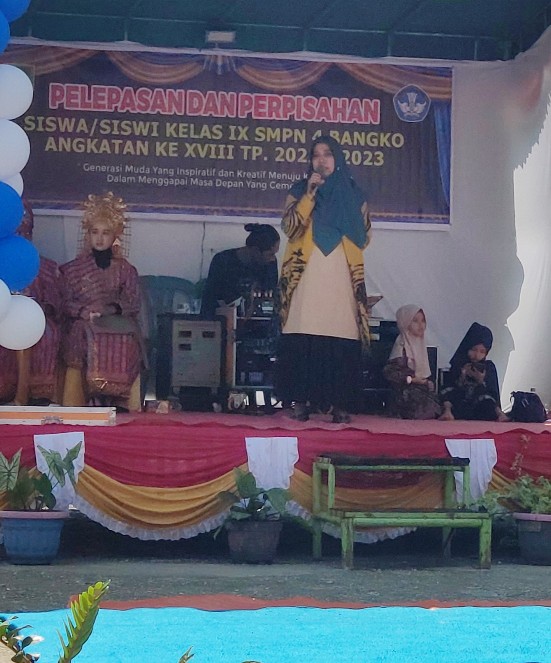 ROKAN HILIR – Sekolah Menengah Pertama (SMP) Negeri 4 Bangko menggelar acara pelepasan siswa kelas kelas IX tahun pelajaran 2022/2023 pada Selasa, (13/6/2023) bertempat lapangan Sekolah itu.