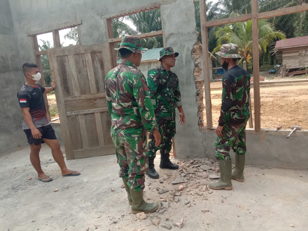 Salah satu sasaran fisik yang dikunjungi oleh Pasiter Satgas TMMD adalah pembangunan Musholla Al-Hidayah di RT. 034 RW. 011 Dusun Boutrem Jaya Kep. Bangko Lestari Kec. Bangko Pusako.