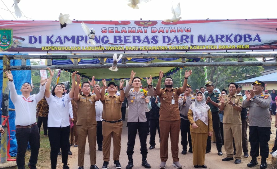 ROKAN HILIR – Pada hari Selasa 12 September 2023 sekira pukul 10.00 WIB, Kepenghuluan Labuhan Tangga Baru Kecamatan Bangko Kabupaten Rohil telah diresmikan sebagai Kampung Bebas Narkoba Kabupaten Rohil Polres Rohil.