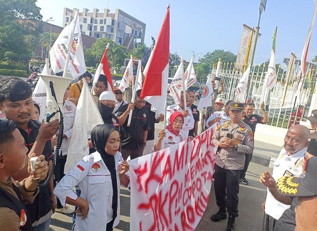 Hal ini lantaran puluhan massa dari DPW Jaringan Pendamping Kebijakan Pembangunan (JPKP) melakukan aksi unjuk rasa di depan gerbang Kantor Gubernur Riau, Senin (12/8/2024).