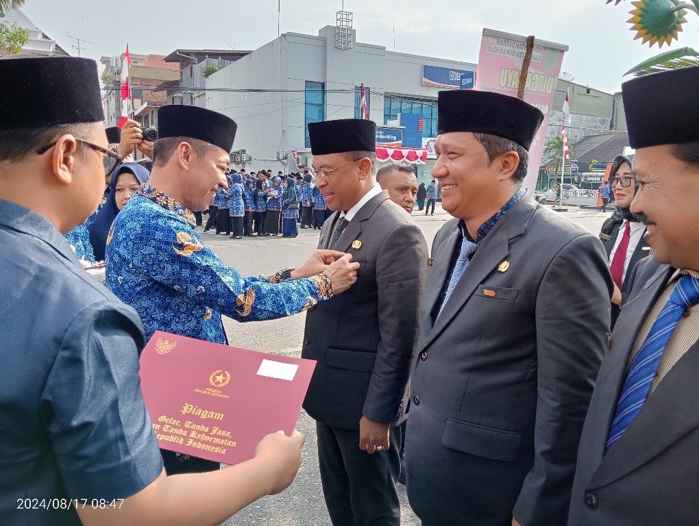Selesai pelaksanaan upacara hari ke 17 bulan Agustus 2024, Bupati Rohil Afrizal Sintong di dampingi para Asisten serta kepala OPD menyematkan tanda kehormatan Satya Lencana Karya Satya serta piagam penghargaan kepada PNS yang sudah menjalankan tugas tanpa henti selama 30 tahun untuk penerima Satya Lencana Emas, 20 tahun untuk Satya Lencana Perak dan 10 tahun untuk penerima Satya Lencana perunggu.