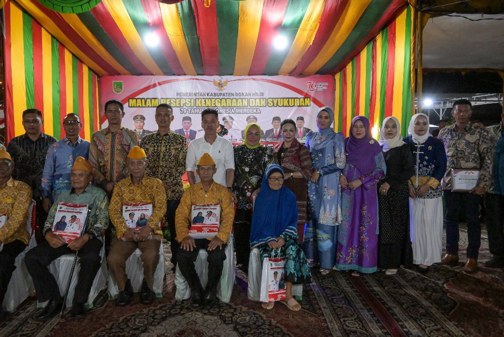 BAGANSIAPIAPI — Pemerintah Kabupaten Rokan Hilir menggelar malam resepsi kenegaraan dan syukuran HUT Ke – 79 Kemerdekaan Republik Indonesia Tahun 2024, Sabtu (17/8/2024) di Mess Pemda Jalan Perwira Bagansiapiapi Rohil Provinsi Riau.