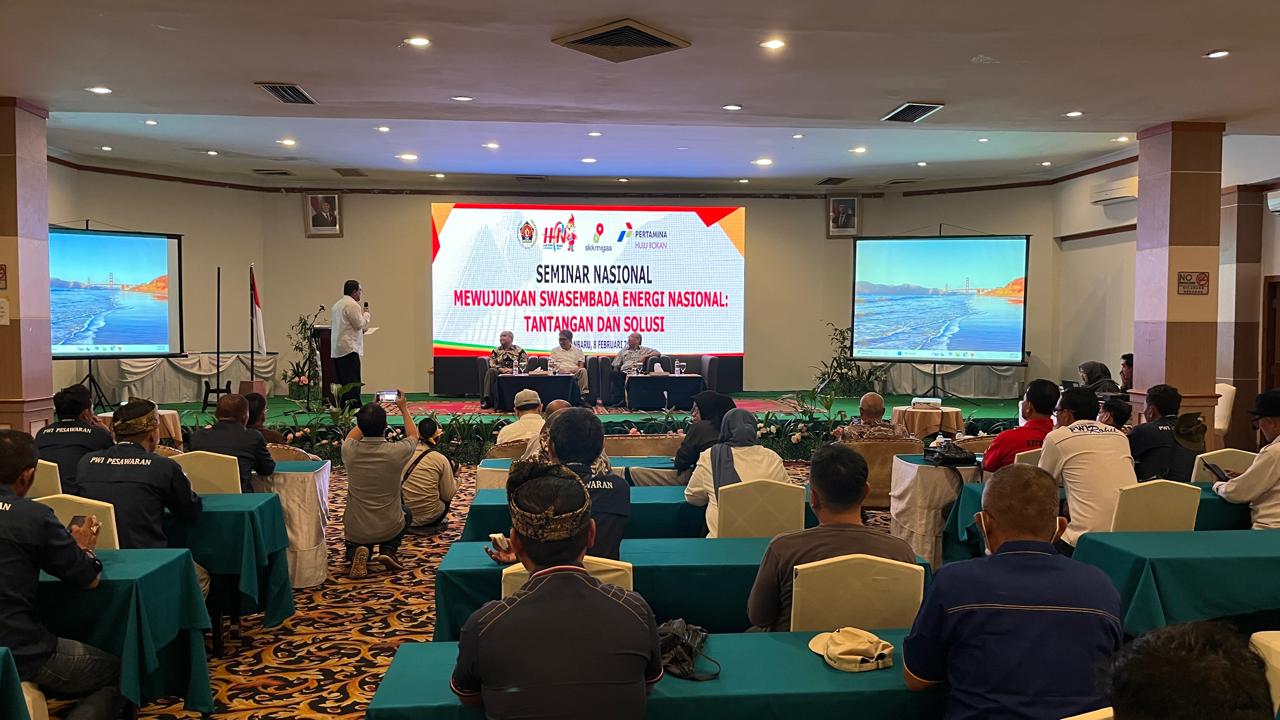 PEKANBARU – Berbagai isu terkait energi dibahas dalam Seminar Nasional dengan tema Mewujudkan Swasembada Energi Nasional: Tantangan dan Solusi, agenda ini berlangsung dalam momen Hari Pers Nasional (HPN) 2025 Provinsi Riau, Sabtu (8/2).