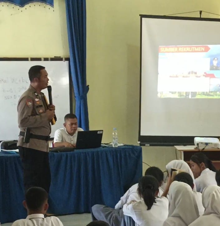 Bhabinkamtibmas Polres Rohil Sosialisasi penerimaan AKPOL, SIPSS, BINTARA, TAMTAMA T.A 2025, di SMAN 4 Tanah Putih, Ujung Tanjung