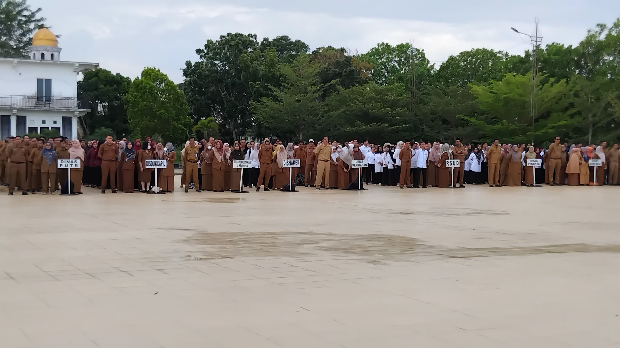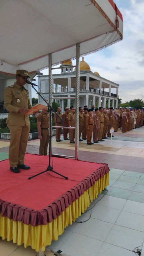 Apel kali ini, terlihat berbeda dari biasanya. Dimana ribuan pegawai di lingkungan Pemkab Rohil turut hadir mengikuti apel, para asisten, kepala OPD dan pegawai turut hadir.
