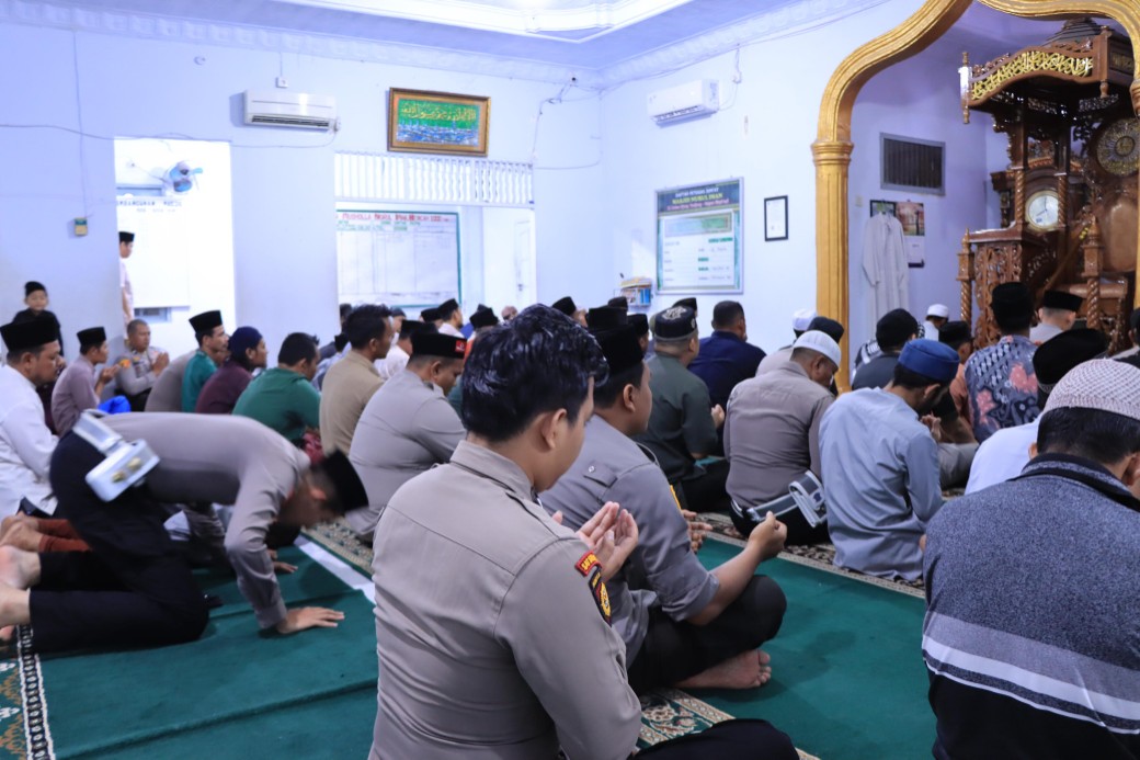 Shalat Isya dan Tarawih Keliling , Kapolres Rohil Berbaur dengan Jama’ah Masjid Nurul Iman