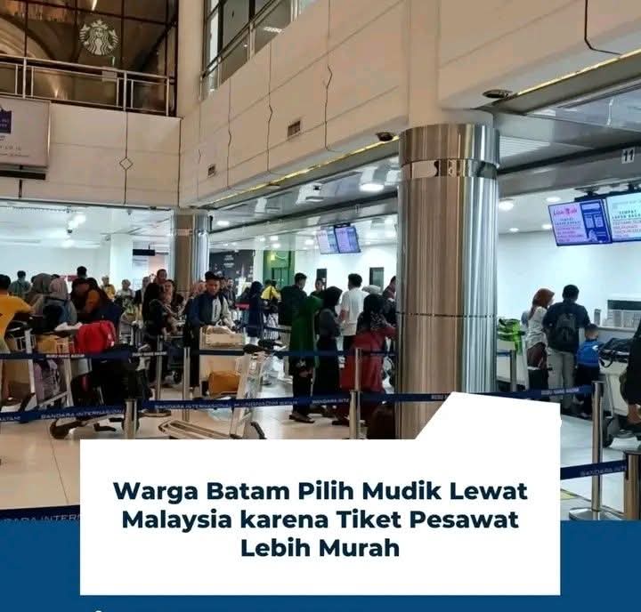 BATAM – Warga Batam, Kepulauan Riau, memilih mudik Lebaran 2025 melalui Malaysia karena lebih murah dibandingkan penerbangan langsung dari Bandara Hang Nadim.