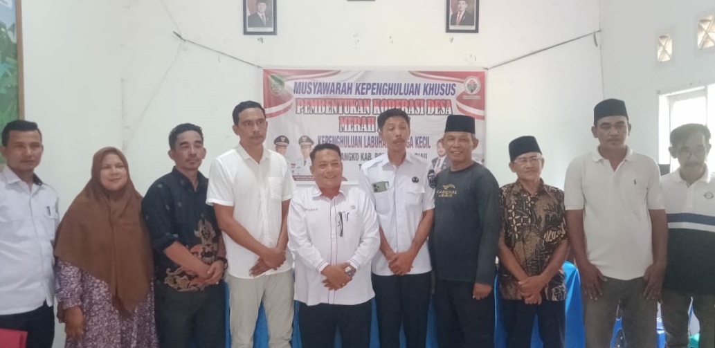 LABUHAN TANGGA KECIL – Penjabat (Pj) Penghulu Labuhan Tangga Kecil, Junaidi A.Ma, menggelar rapat Musyawarah Desa Khusus (Musdesus) pembentukan Koperasi Desa (Kopdes) merah putih bertempat diaula kantor Kepenghuluan Labuhan Tangga Kecil, Kecamatan Bangko, Kabupaten Rokan Hilir (Rohil) rabu (22/5/25).