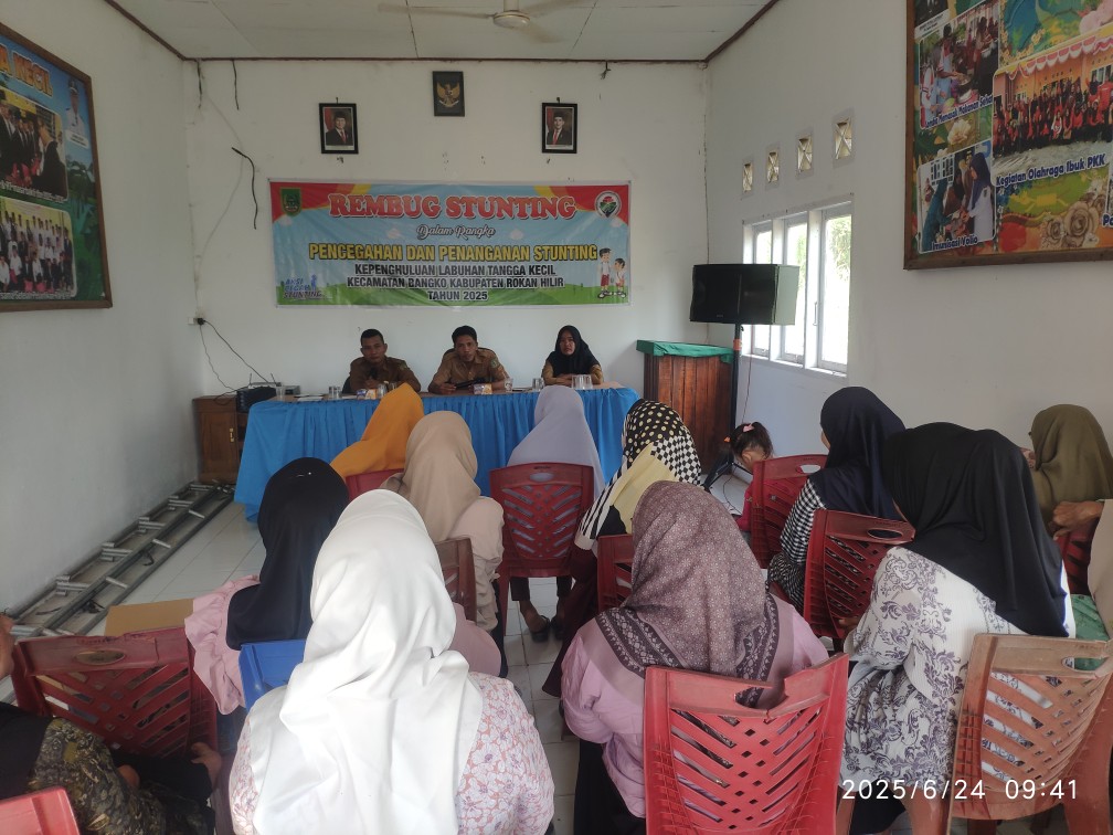 LABUHAN TANGGA KECIL – Pemerintah Kepenghuluan Labuhan Tangga Kecil, Kecamatan Bangko, Kabupaten Rokan Hilir menggelar rapat koordinasi bersama Kader PKK dan Kader Posyandu dalam rangka memperkuat sinergi pelaksanaan program kesehatan masyarakat, khususnya upaya pencegahan stunting, selasa (24/6/25).
