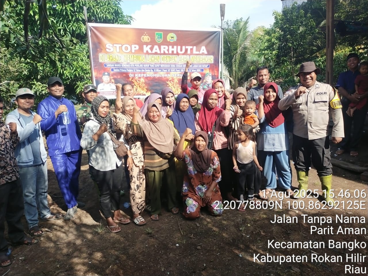 Dalam kesempatan itu Bhabinkamtibmas kep serusa Aiptu Ramadanis SH juga Mengajak masyarakat agar memberikan informasi secepatnya jika ada titik Api, tidak membuang puntung rokok sembarangan yang dapat memicu terjadi nya karhutla,mengingat wilayah perkebunan merupakan tanah lahan gambut dan rumput kering yang sangat mudah terbakar dan sangat sulit untuk dipadamkan serta akses jalan yang sulit dijangkau sehingga apabila terjadi karhutla sangat merugikan kita semua.