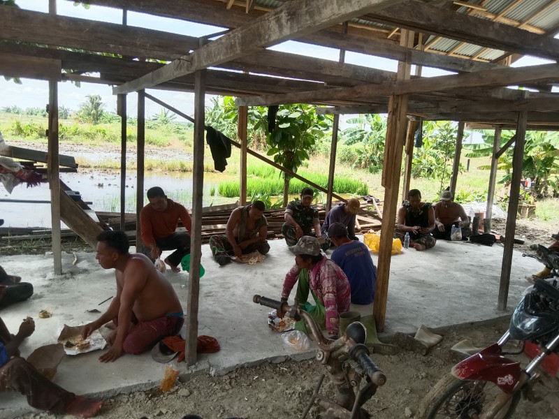 Makan siang bersama ini berlangsung sederhana namun penuh makna, dengan Satgas TMMD dan warga yang bekerja di lokasi semenisasi duduk bersama menikmati hidangan yang disiapkan secara gotong royong.